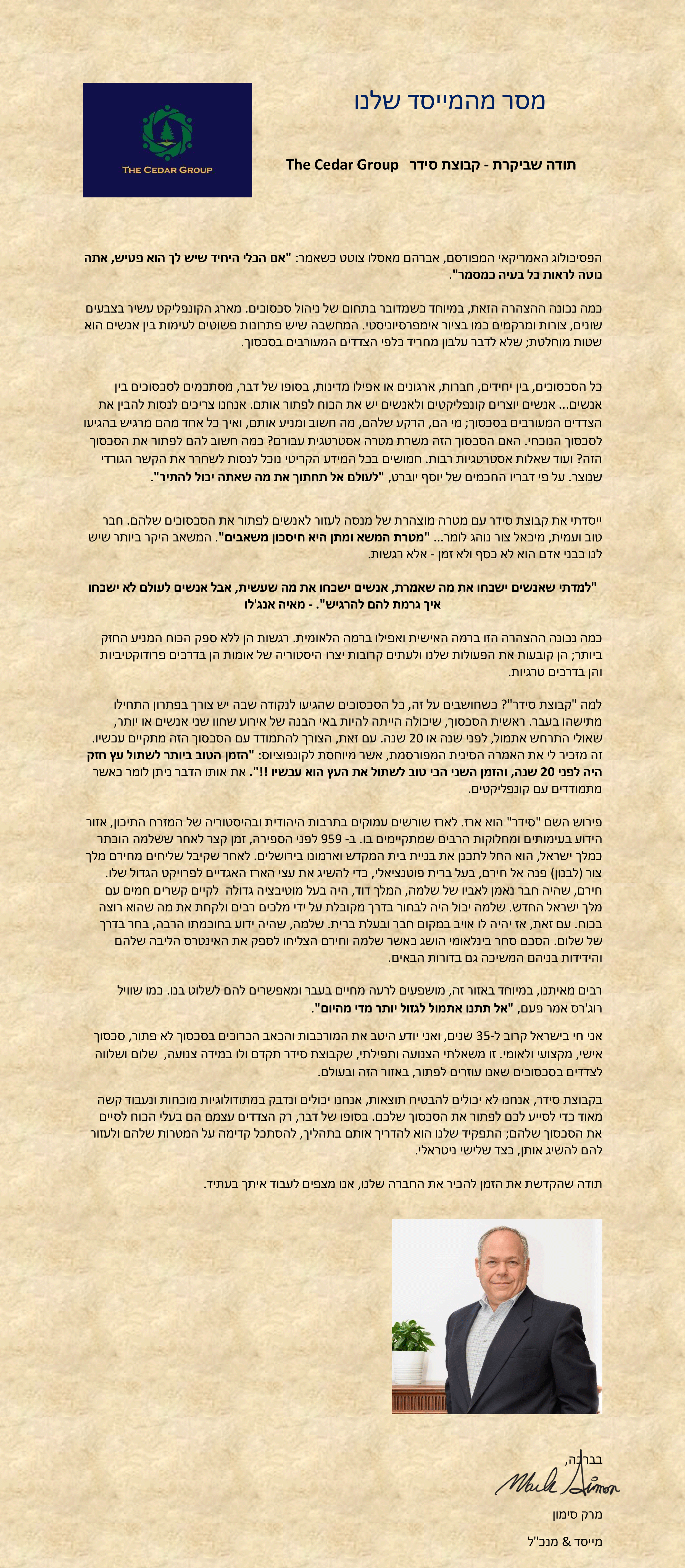 After we have worked with you to resolve the conflict. We will periodically meet with key players in the organization to make sure that all is calm. We will likewise provide you with the skills needed to reinforce that the solution to the conflict is still effective.